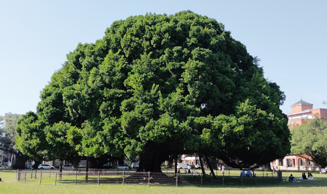皇太子時代の昭和天皇がこの地に行幸した際に植樹したガジュマルの木がある「榕園」。