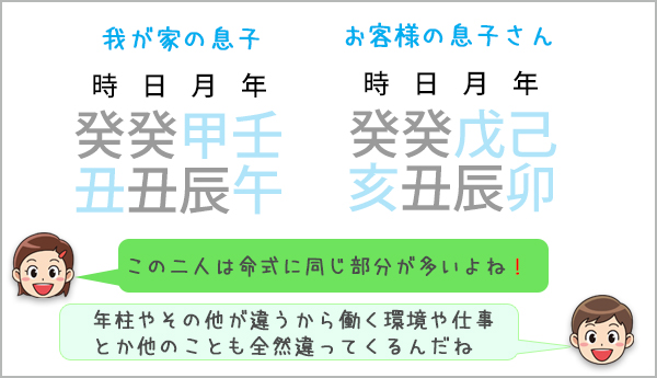 この同じ時に大学入試を受けていたお客様の息子さん(我が家の息子と日柱と月支が全く同じです)と全く同じパターンで、2021年は必ずどこかしら合格が出る運の年だということが私には命式と年運からもうすでに分かっていたのです。